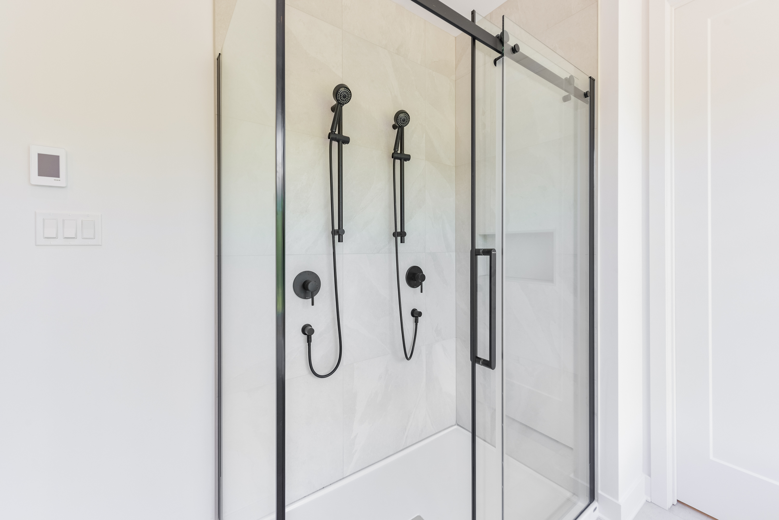 • Shower 60 x 36 master bathroom with two shower faucets
