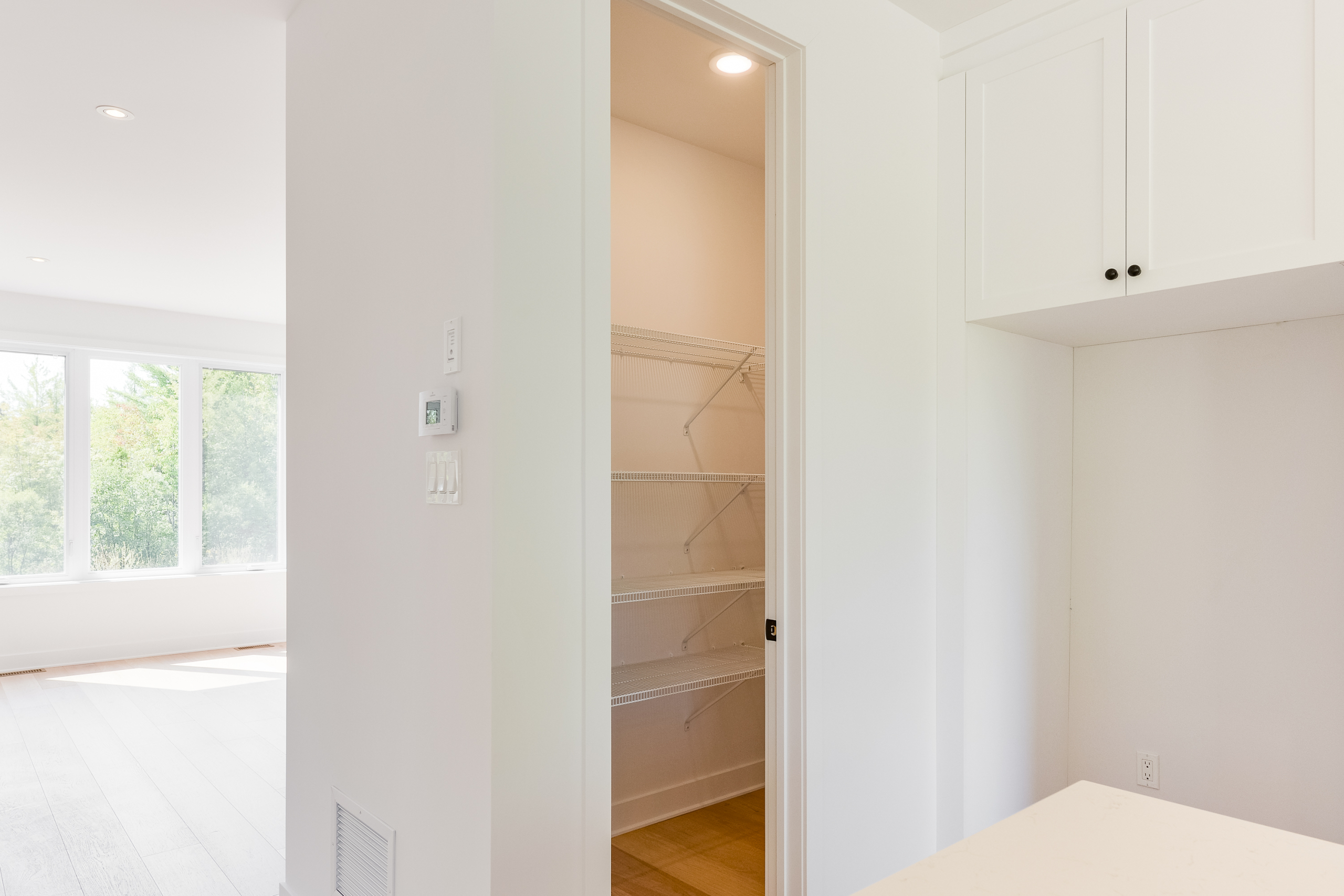 • quartz backsplash in the kitchen
